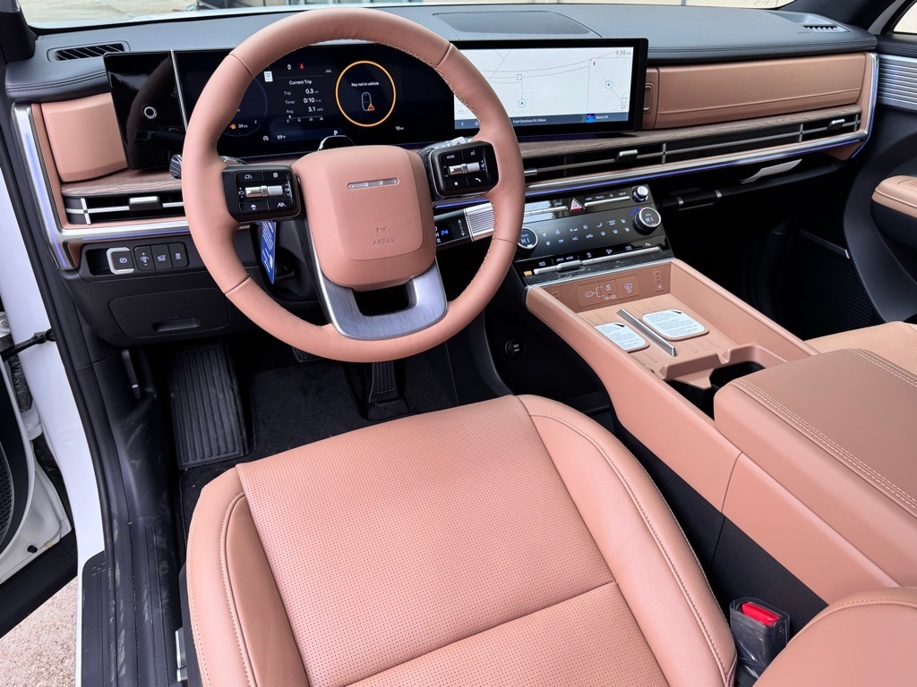 White 2026 Hyundai Santa Fe Limited FWD 8-Speed Automatic with SHIFTRONIC 2.5L I4 Pecan Brown Leather.